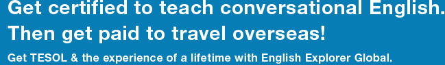 TESOL is the certification course for people who are going to Teach English to Speakers of Other Languages. English Explorer is an Australian company that provides the TESOL course online to people all over the world. Our online TESOL Certificate and advanced courses are all internationally recognised and are a standard prerequisite for many overseas teaching positions. It's your best ticket for travel and work opportunities worldwide, as well as best pay.